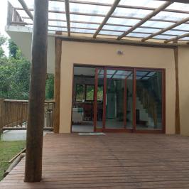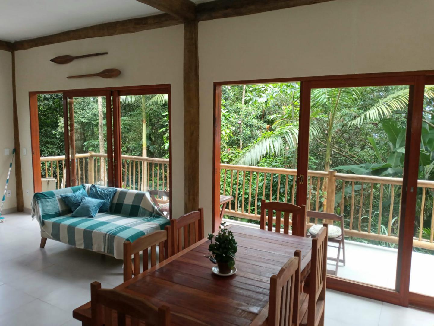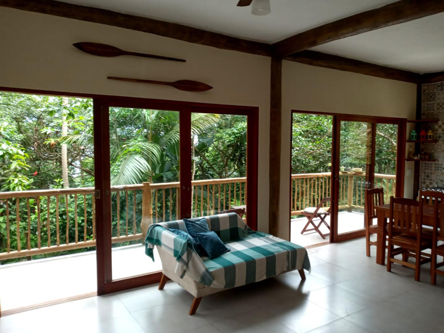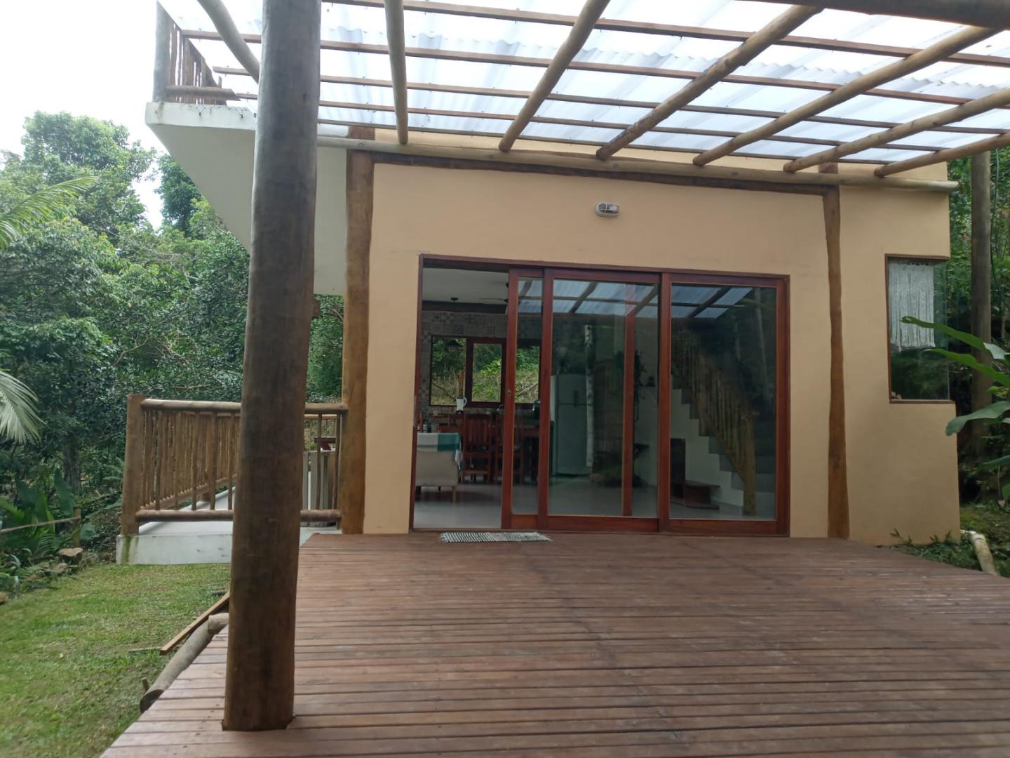 A casa se localiza a 50 mts da Praia do Fora em Trindade, no meio da Mata Atlântica, cercada por árvores.