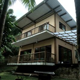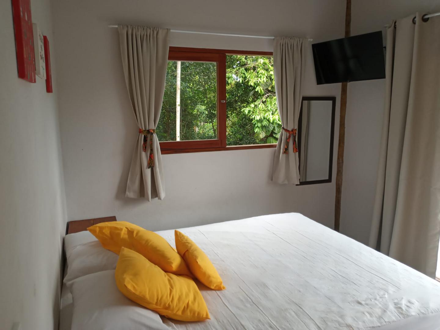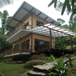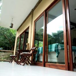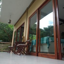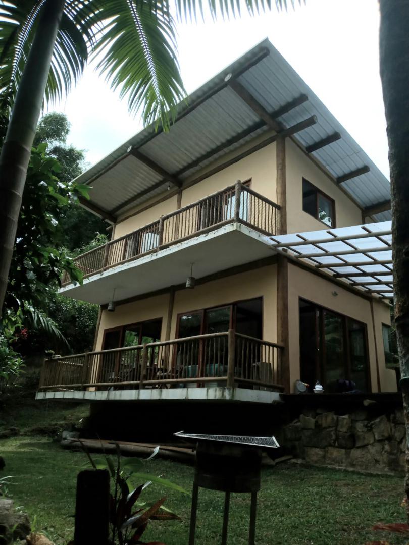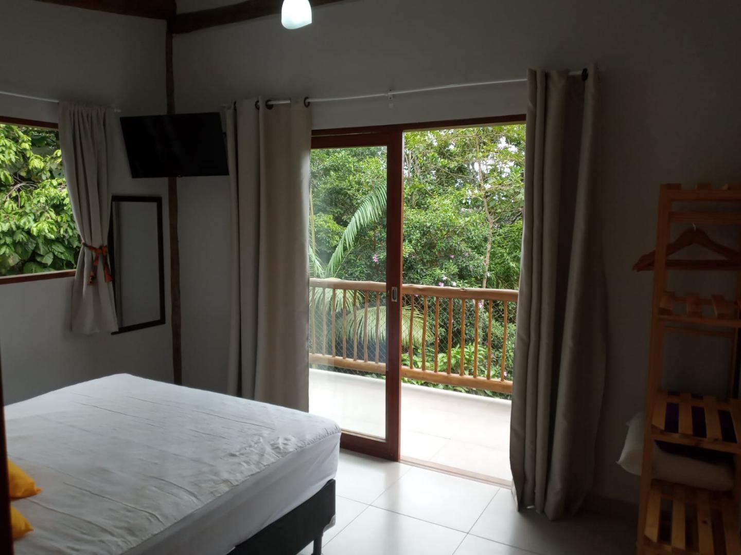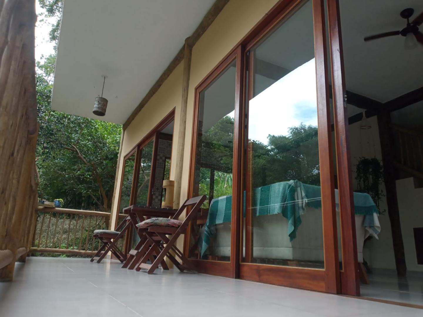 A casa se localiza a 50 mts da Praia do Fora em Trindade, no meio da Mata Atlântica, cercada por árvores.