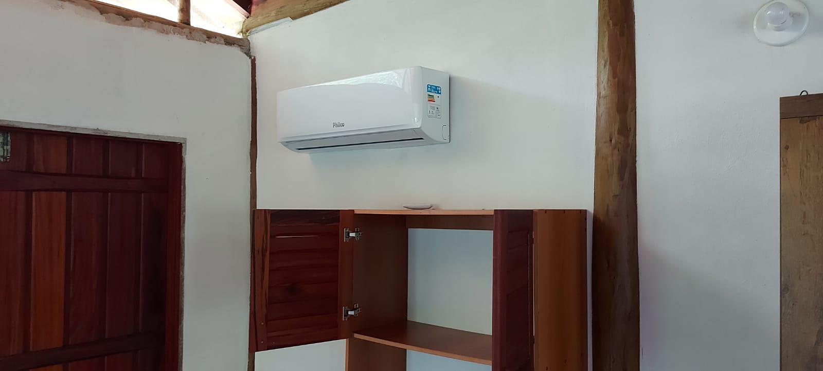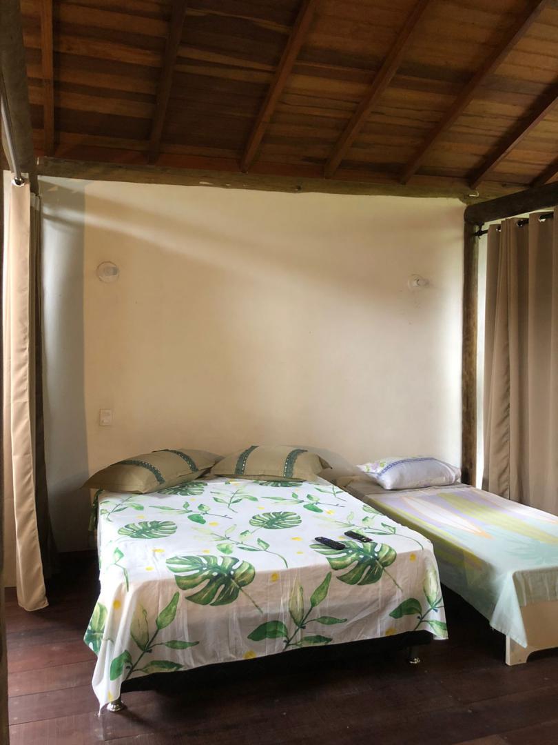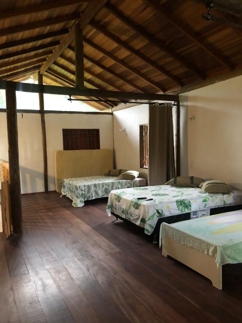 Casa tem duas camas de casal, uma de solteiro e um colchão de casal.