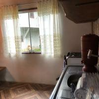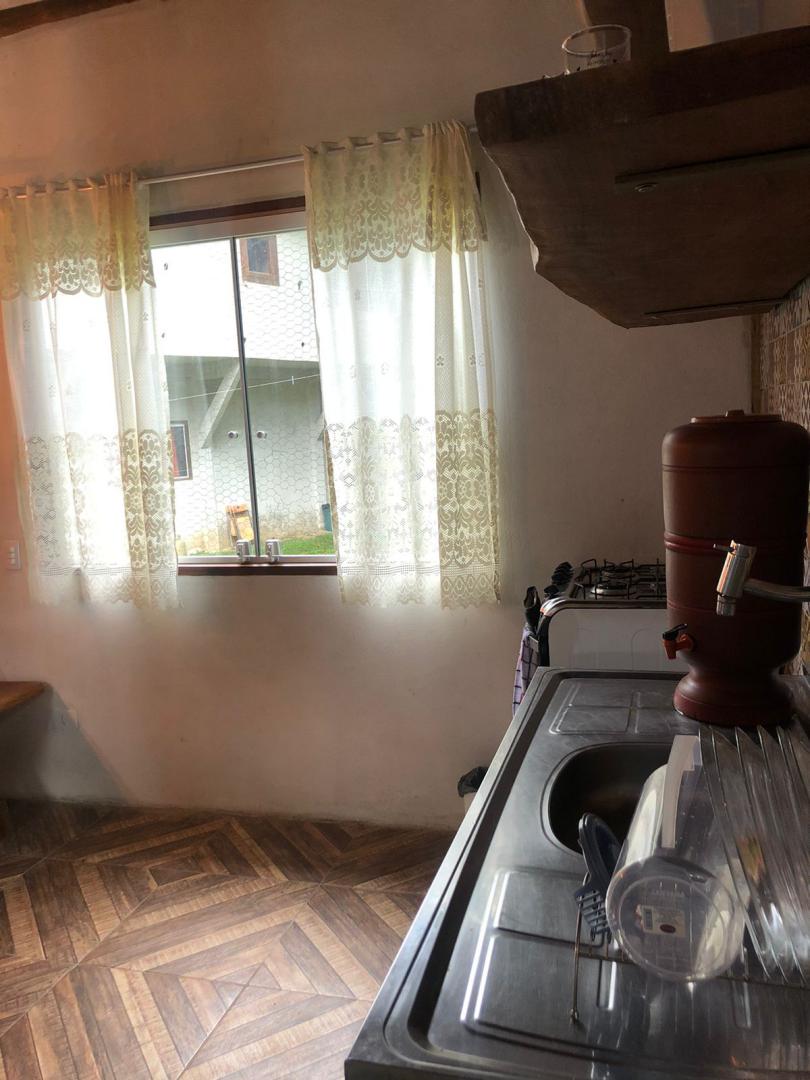 Casa com cozinha e sala junta .
