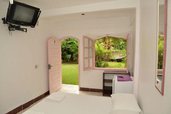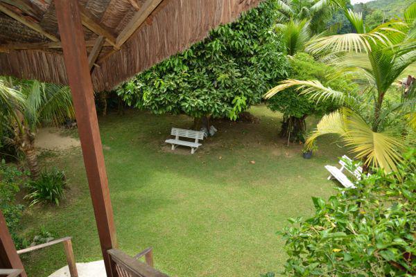 (A pousada está localizada em uma grande área verde e próxima das melhores praias, cachoeiras e comércio local.)